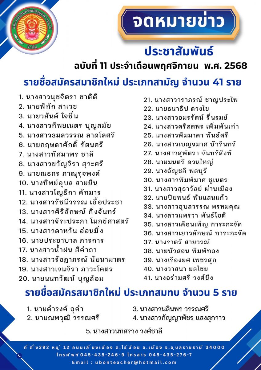 รายชื่อสมาชิกใหม่ ประจำเดือนพฤศจิกายน 2568