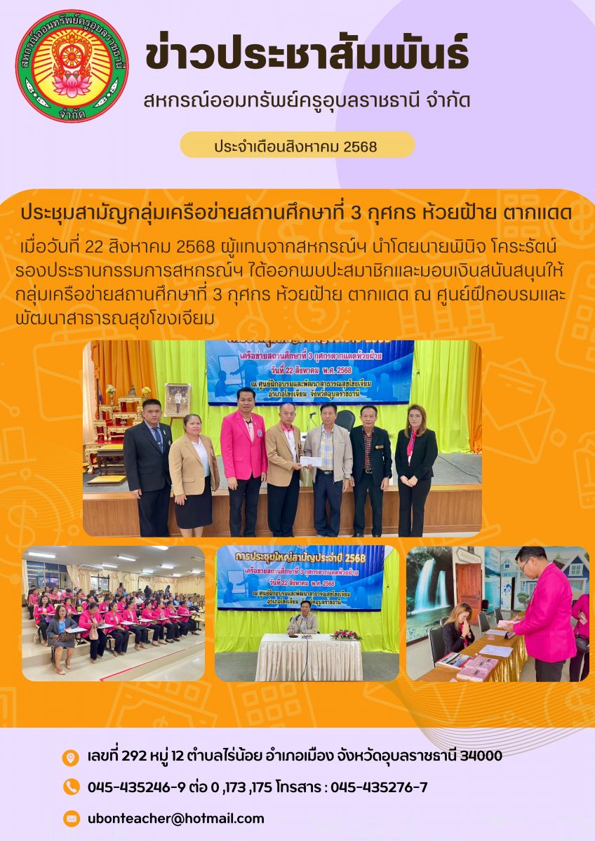 สหกรณ์ฯ ออกพบปะสมาชิกกลุ่มเครือข่ายสถานศึกษาที่ 7 คำไหล ดอนใหญ่ สำนักงานเขตพื้นที่การศึกษาประถมศึกษาอุบลราชธานี เขต 3