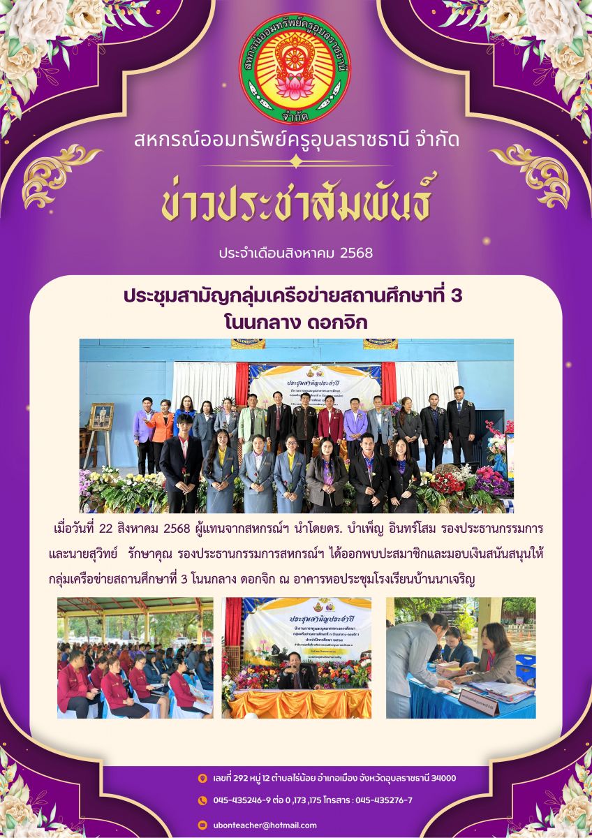 สหกรณ์ฯ ออกพบปะสมาชิกกลุ่มเครือข่ายสถานศึกษาที่ 7 คำไหล ดอนใหญ่ สำนักงานเขตพื้นที่การศึกษาประถมศึกษาอุบลราชธานี เขต 3